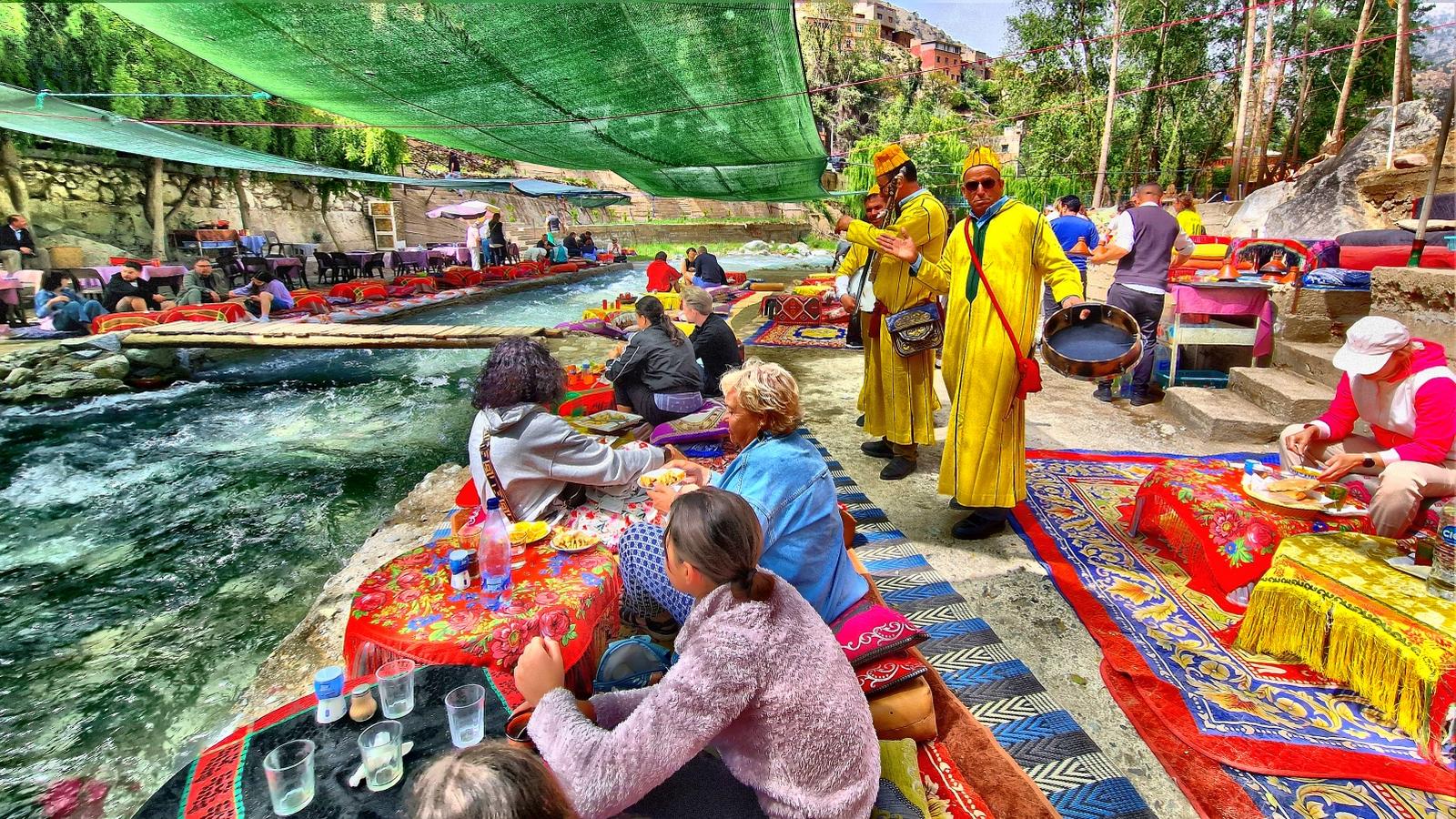 Z miasteczka Ourika jedziemy zieloną doliną w kierunku gór. Po drodze, wzdłuż rzeki, co kawałek widzimy restauracje i miejsca piknikowe. Ciągną się kilometrami. Powstały z myślą nie tylko o turystach odwiedzających trzy doliny, ale także o mieszkańcach Marrakeszu, którzy uciekają przed upałem miasta i szukają ochłody nad wodą. Podobnie jest w przypadku Kaskady Ouzoud na północ od Marrakeszu.